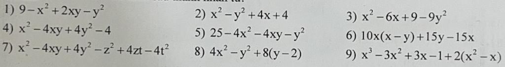 `1)` `9` - `x^2` + `2xy` - `y^2`