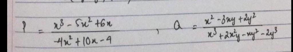 `Q=(x^2 -3xy+2y^2)/(x^3+2x^2y-xy^2-2y^3)`