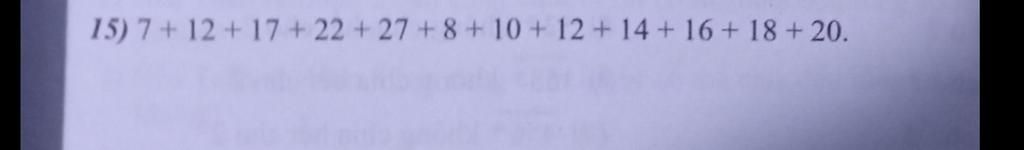 `15) 7 + 12 + 17 + 22 + 27 + 8 + 10 + 12 + 14 + 16 + 18 + 20`