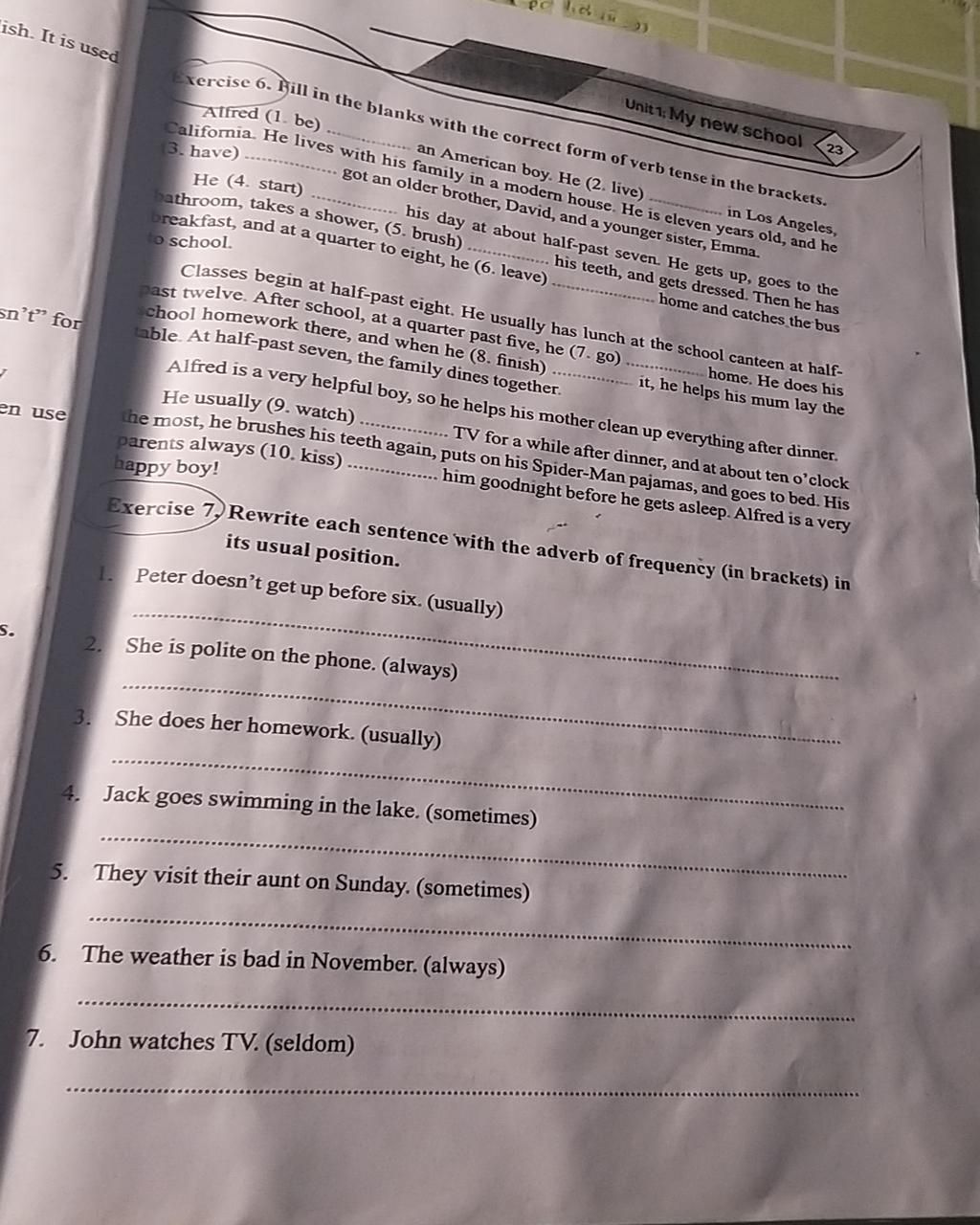 Exercise 6. Fill in the blanks with the correct form of verb tense in the brackets.