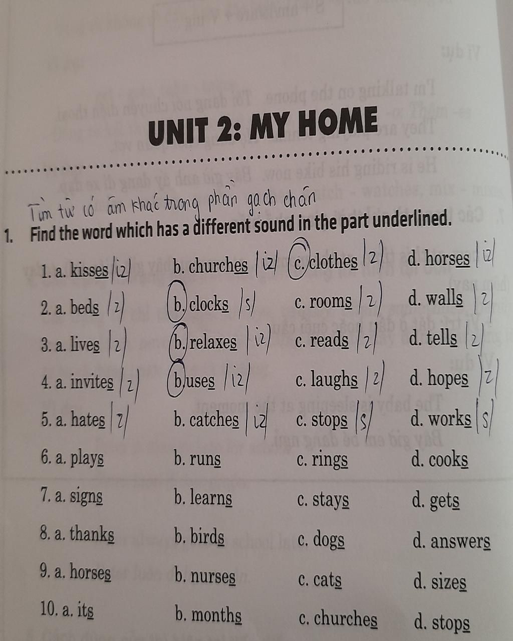1. Find the word which has a different sound in the part underlined.
