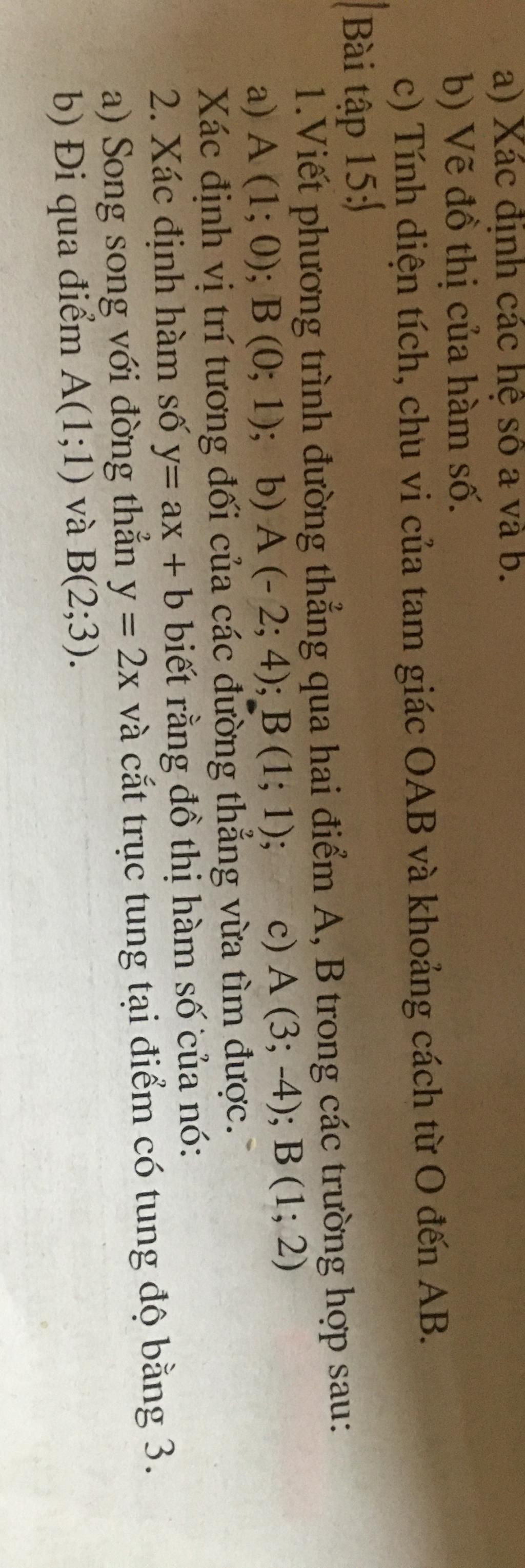 1.Viết phương trình đường thẳng qua hai điểm A, B trong các trường hợp sau: