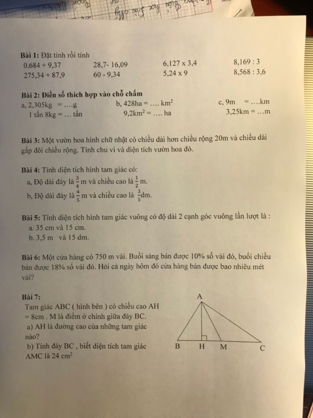 AH là chiều cao của tam giác ABH; ACH; AHM; ABM; ACM và ABC.
