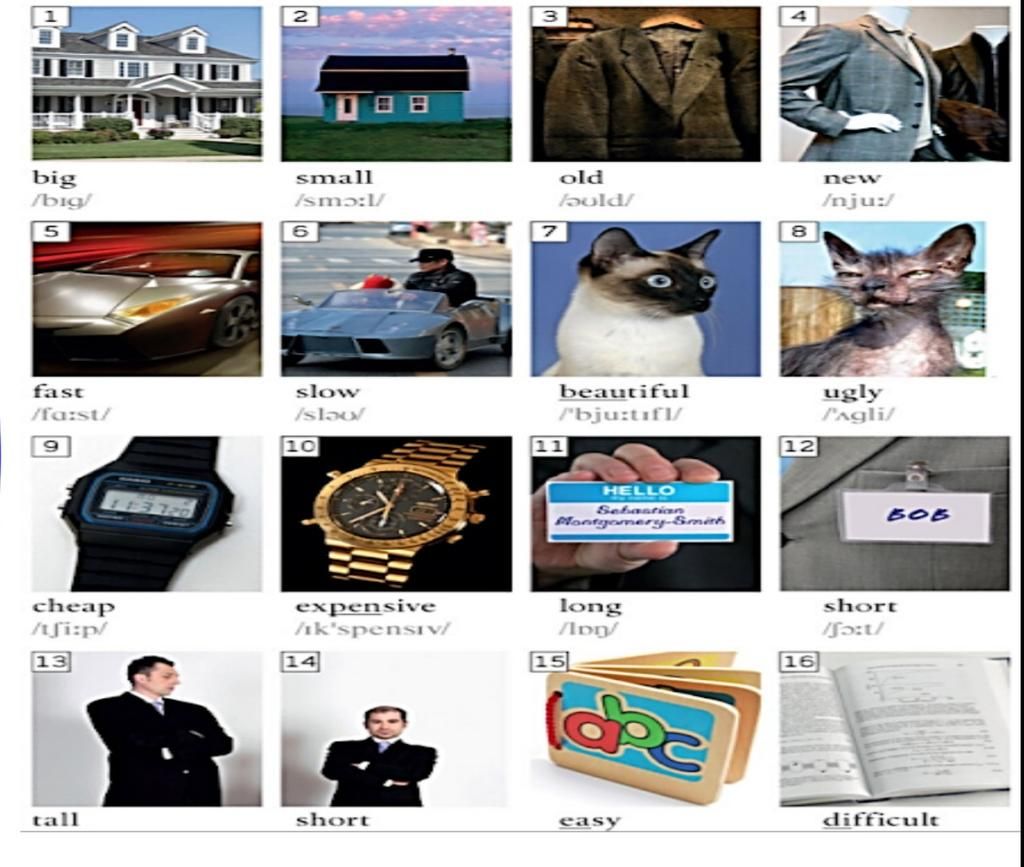 Ghép 2 hình lại với nhau thành một cặp thì tổng cộng có 8 cặp nhé rồi đặt câu theo cấu trúc: