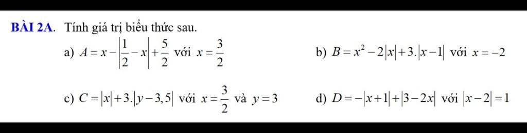 a)A = x - \left| {\dfrac{1}{2} - x} \right| + \dfrac{5}{2}\\