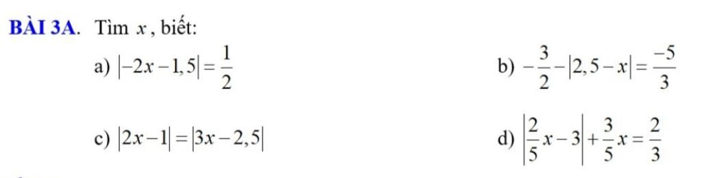 b) - \dfrac{3}{2} - \left| {2,5 - x} \right| = - \dfrac{5}{3}\\