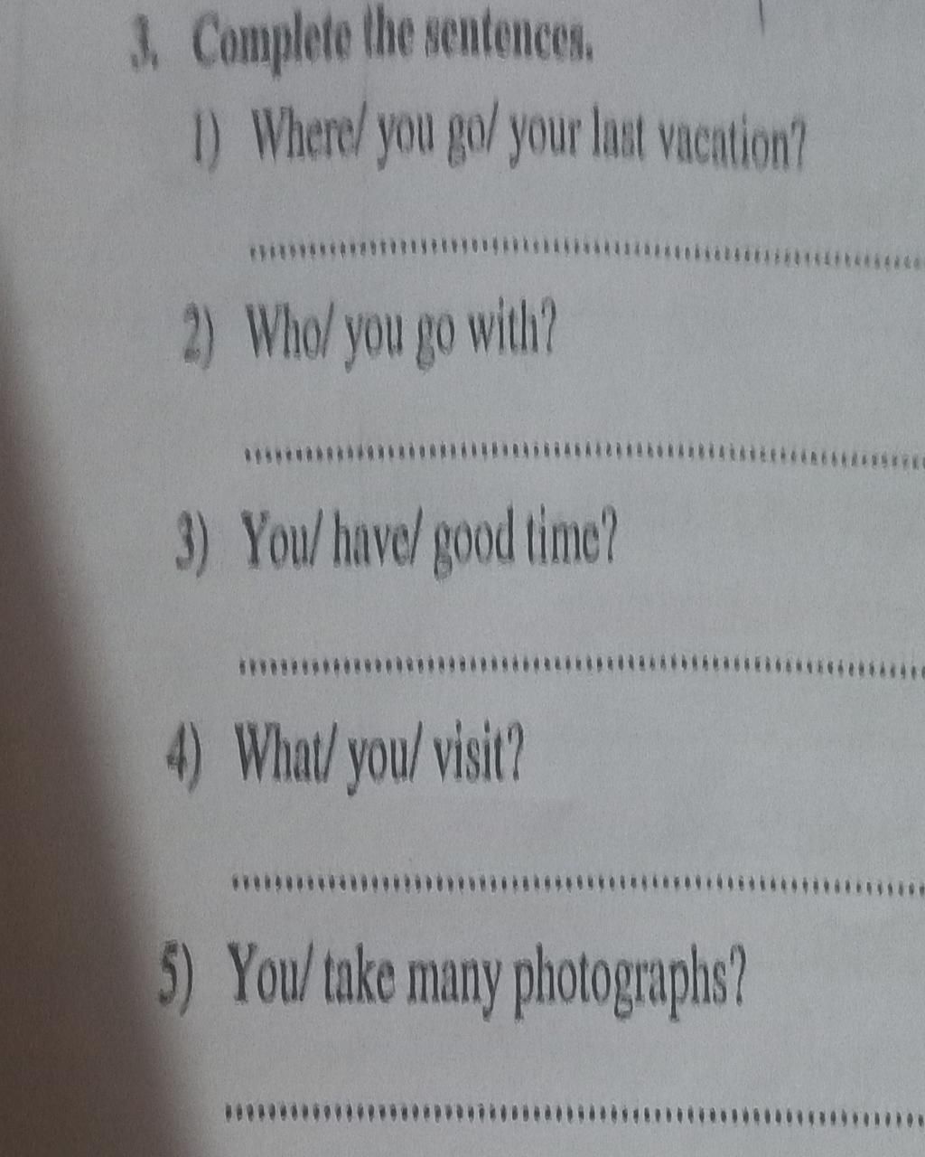 `1,` Where did you go on your last vacation?