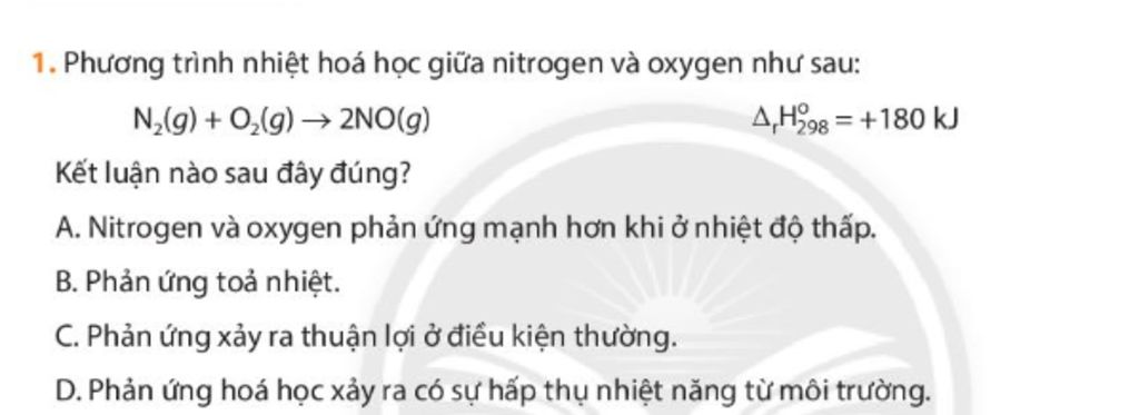 1. Phương trình nhiệt hoá học giữa nitrogen và oxygen như sau: