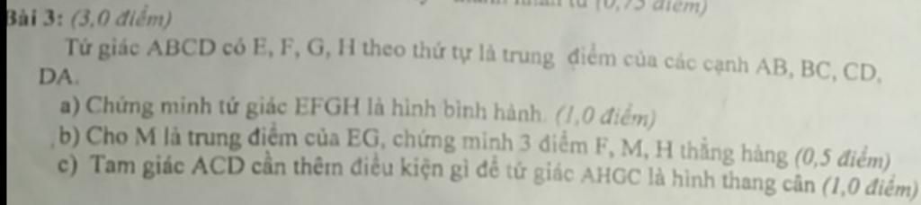 a) Chứng minh tử giác EFGH là hình bình hành. (1,0 điểm)