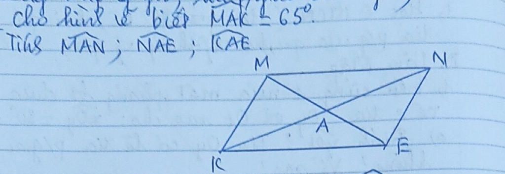 Vậy `\hat{MAN}=\hat{KAE}=115^o;\hat{NAE}=65^o`