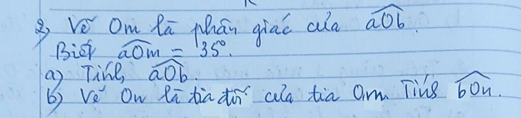 Vẽ Om là phân giác của góc aOb. Biết góc aOm = 35°.