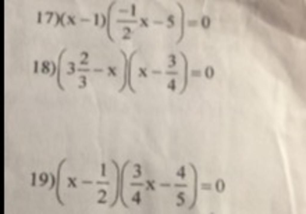 ` ( x - 1/2)(3/4x - 4/5 ) = 0 `