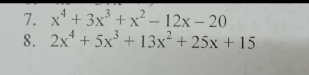 `7) x^4 + 3x^3 + x^2 - 12x - 20`