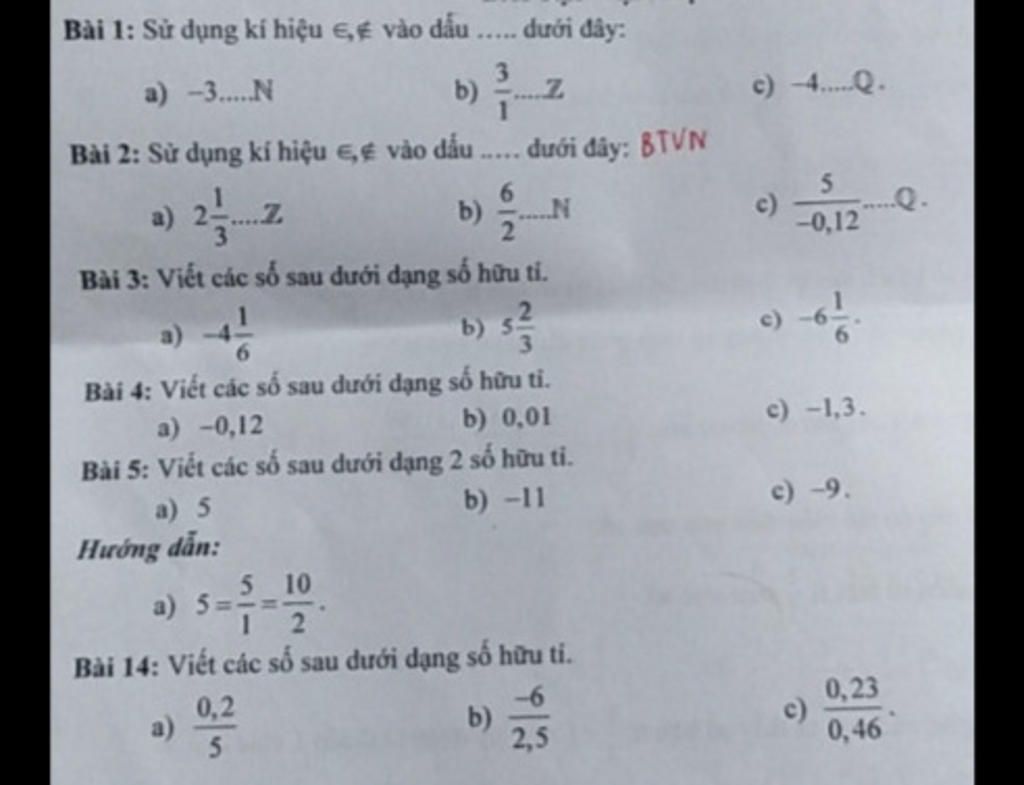 Bài 5: Viết các số sau dưới dạng 2 số hữu t ...
