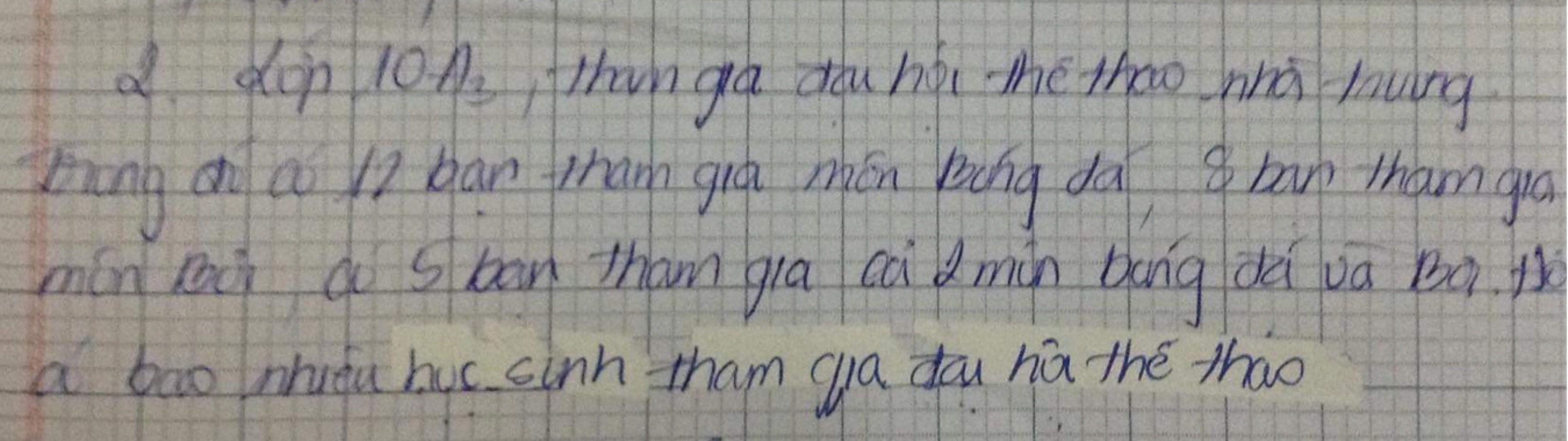 Vậy lớp `10A_3` có `15` học sinh tham gia đại hội thể thao