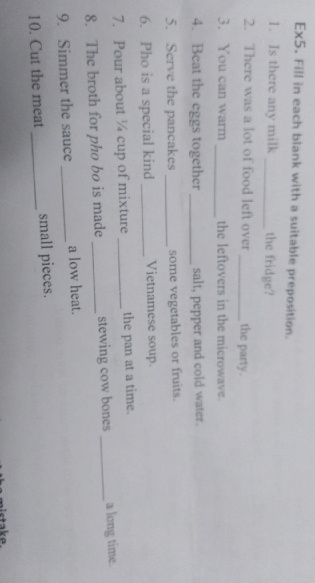 Ex5. Fill in each blank with a suitable preposition.