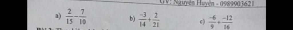 $\color{red}{a)}\; \dfrac2{15} - \dfrac7{10}$