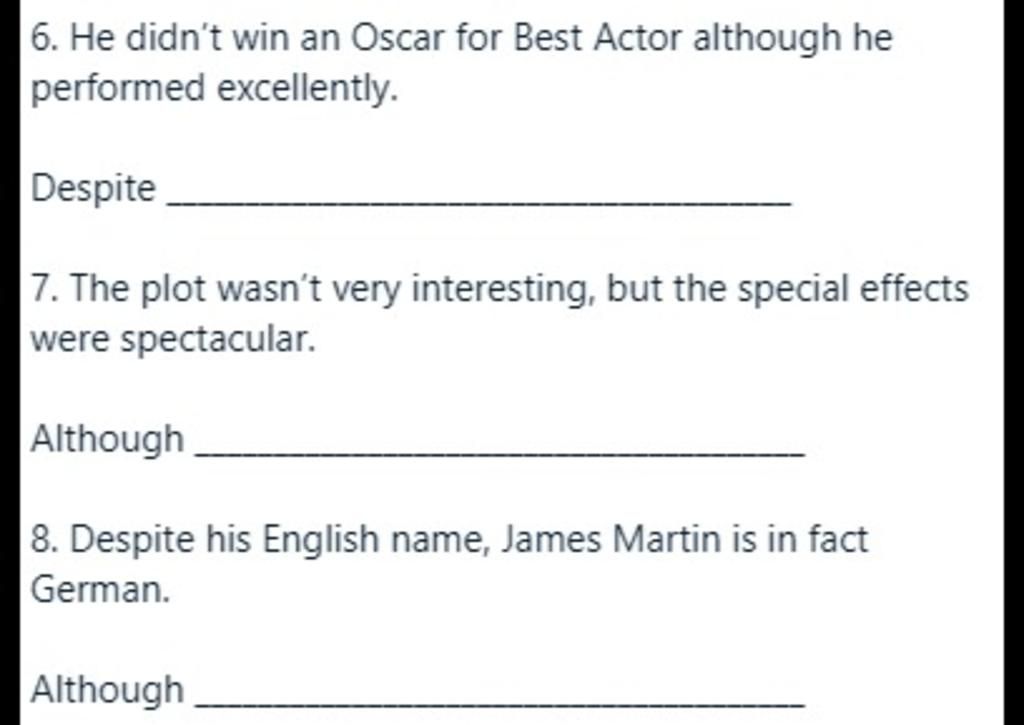 →Although+S+V, S+V=Despite+Ving, S+V