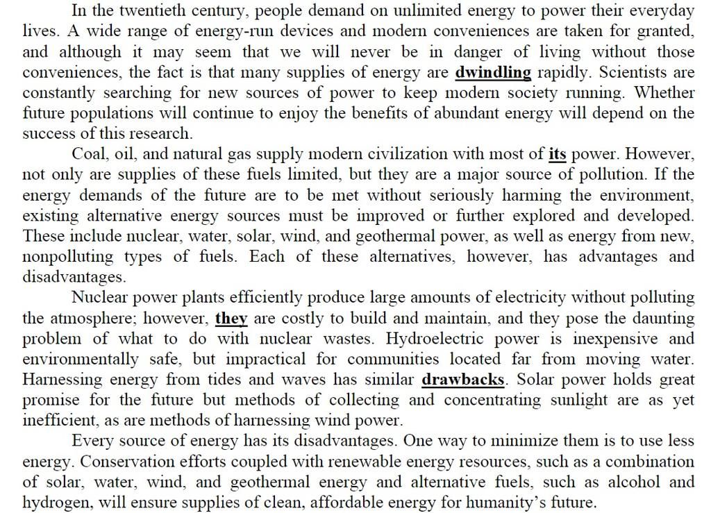 Bài văn bao gồm `4` đoạn nhỏ, những dẫn chứng trên chỉ là một vài ý, đọc từng đoạn sẽ thấy được bài văn chủ yếu thảo luận ưu nhược điểm của một số nguồn năng lượng.