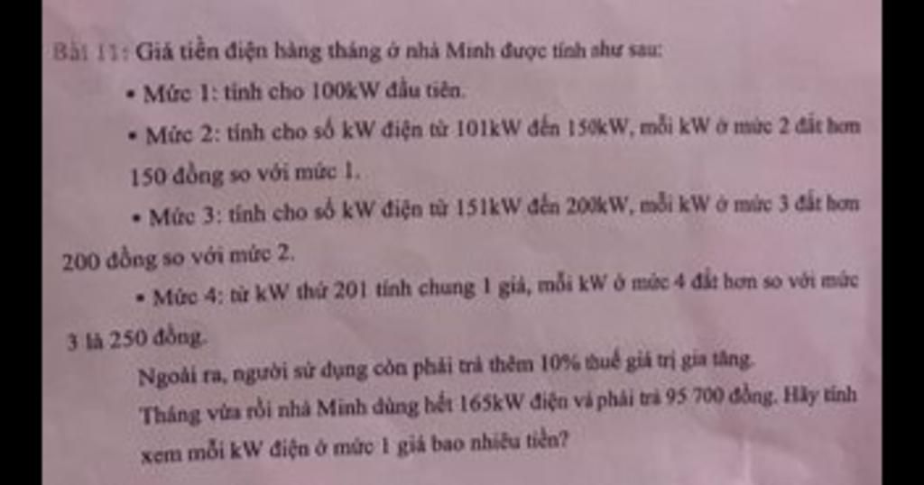 Bài I1: Giả tiền điện hàng tháng ở nhà Minh được tính như sau: