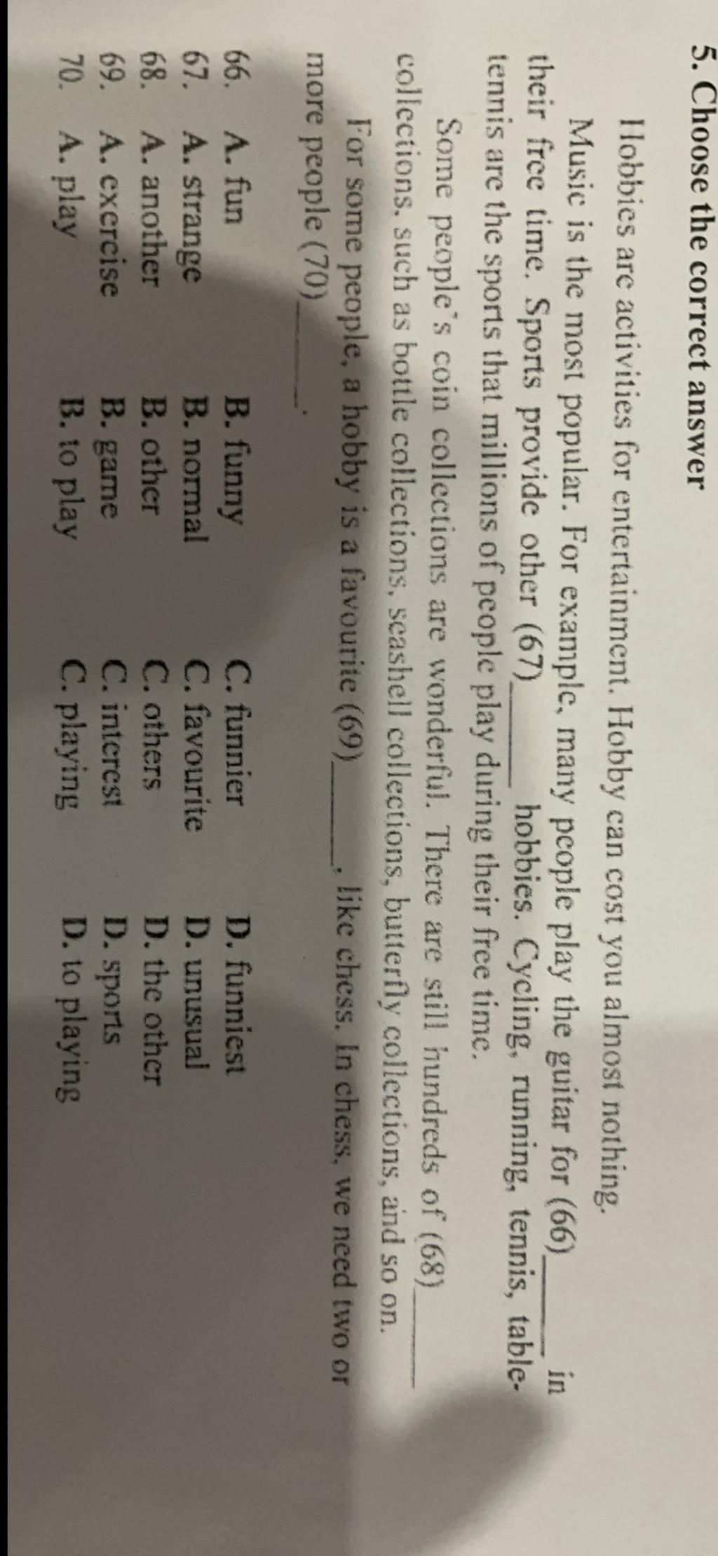 67.C - favourite (favourite hobbies: sở thích yêu thích)