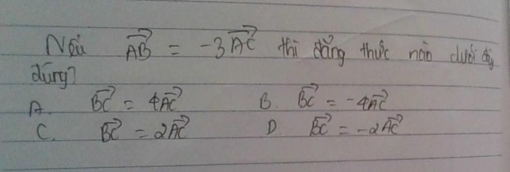 `⇔` $\overrightarrow{AC}$ `-` $\overrightarrow{BC}$ `= - 3`$\overrightarrow{AC}$