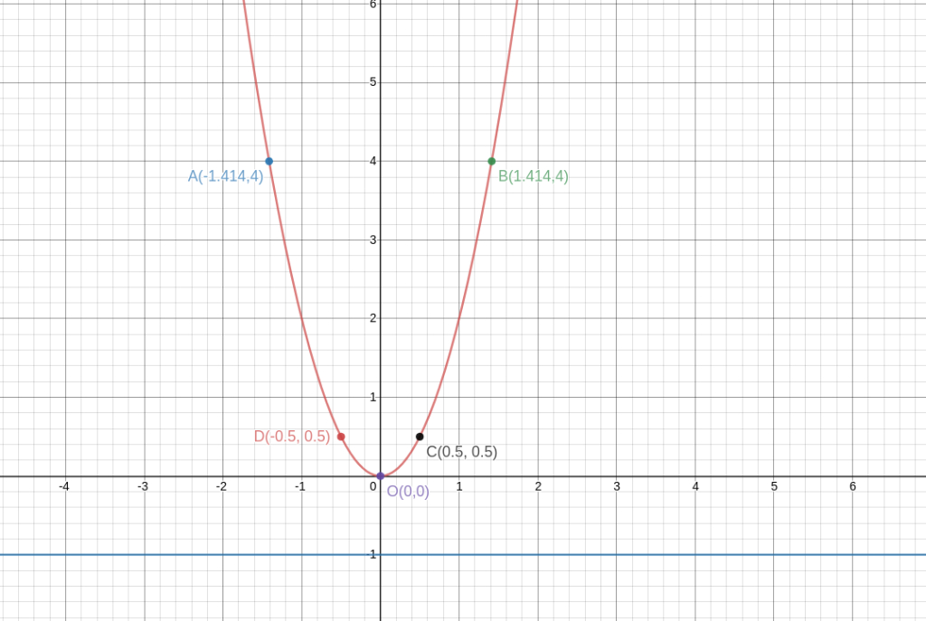 Từ đồ thị suy ra $A(-\sqrt{2},4),B(\sqrt{2},4) $ là điểm thuộc (P) và có tung độ bằng 4