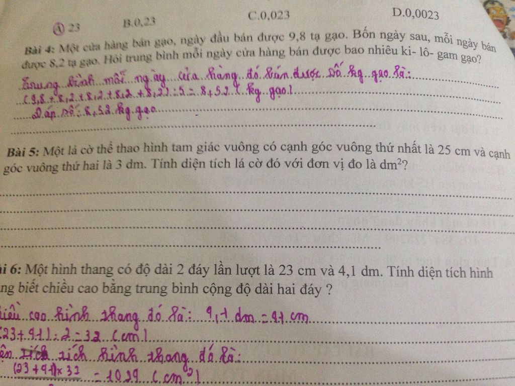 Bài giải Đổi 25cm = 2,5dm Diện tích lá cờ đó là: 2,5×3:2=3,75(dm2) Đáp án: 3,75dm2