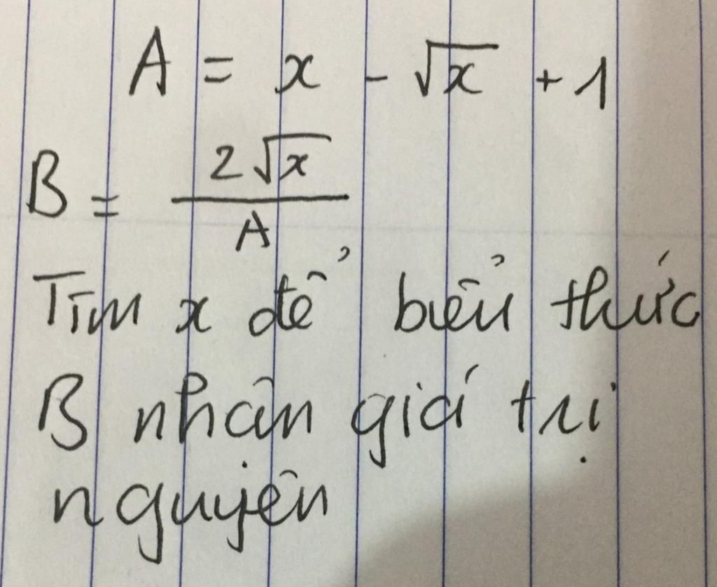 Để `B in ZZ` thì `(2sqrtx)/(x-sqrtx+1) in ZZ`