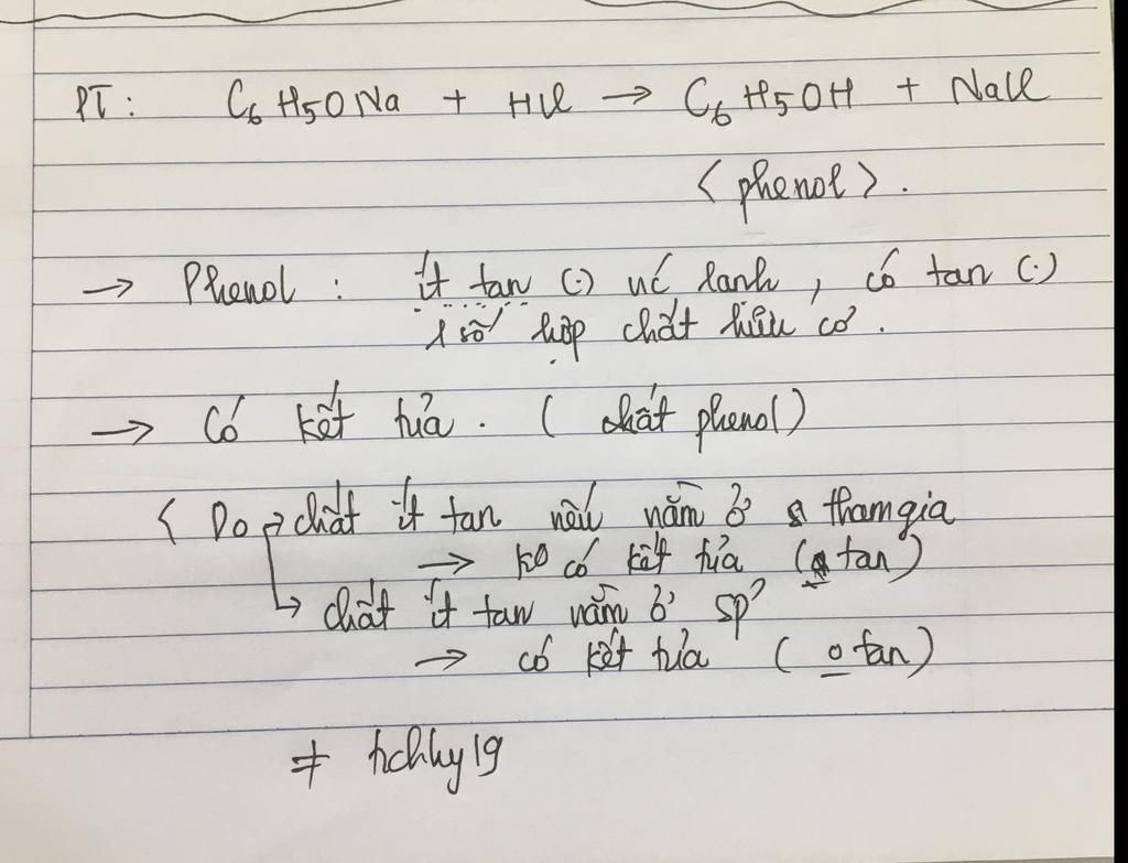 Đáp án: C6H5ONa + HCl--->C6H5OH+NaCl