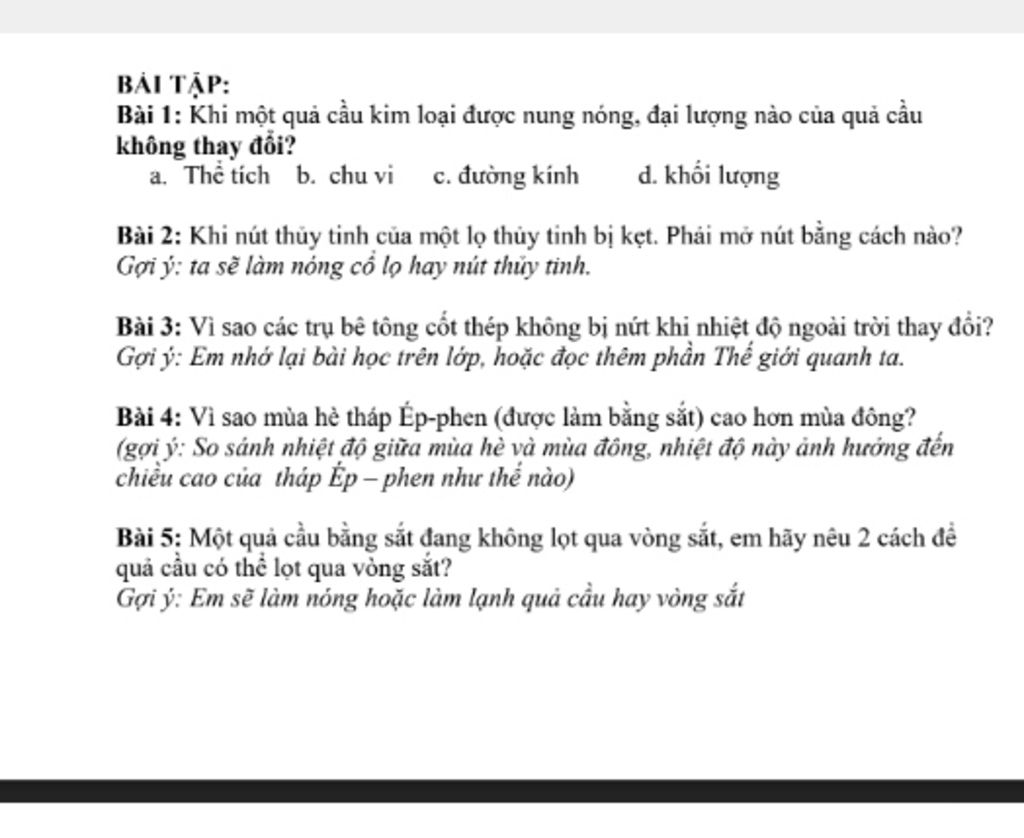 Cách 1: Ta nung nóng vòng sắt để vòng sắt có sự nở ra vì nhiệt thì lúc đó quả cầu sắt sẽ dễ dàng lọt qua.