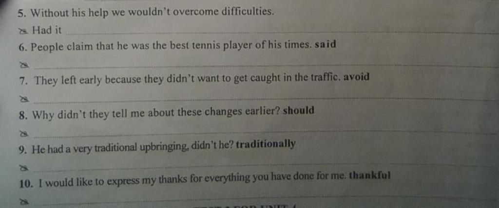 $\text{5.}$ Had it not been for his help, we wouldn't have overcome difficulties.