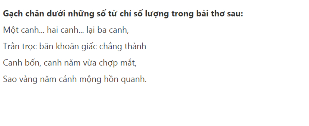 Các số từ : một canh, hai canh, ba canh, năm cánh.