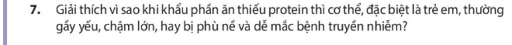 * Protein là thành phần của kháng thể, khi protein giảm, kháng thể giảm không đủ để chống lại tác nhân gây bệnh nên dễ mắc bệnh truyền nhiễm