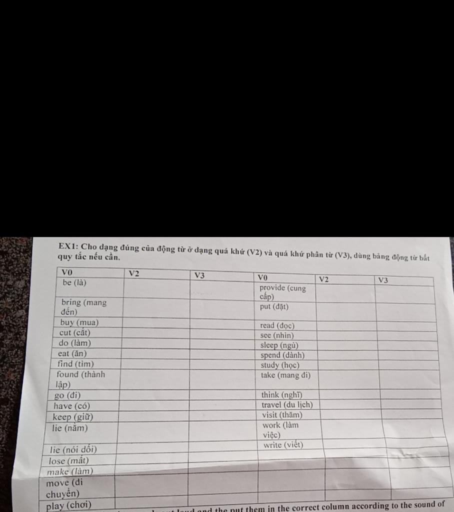 ĐỘNG TỪ Ở HIỆN TẠI HOÀN THÀNH: Quá khứ phân từ: không theo một quy luật nào.