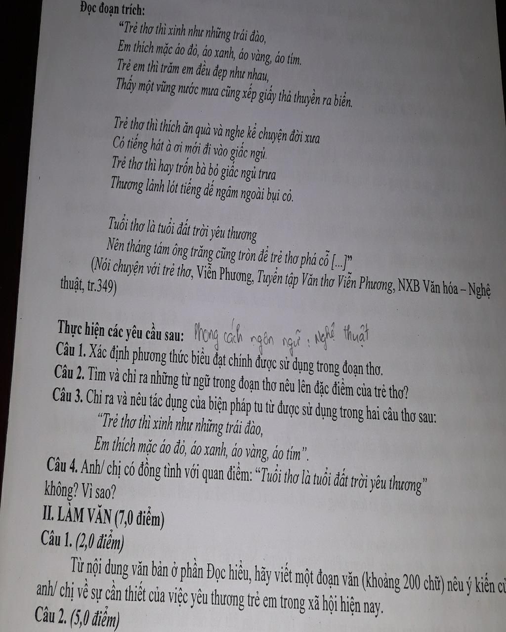 Câu 1: Phong cách ngôn ngữ: Nghệ thuật