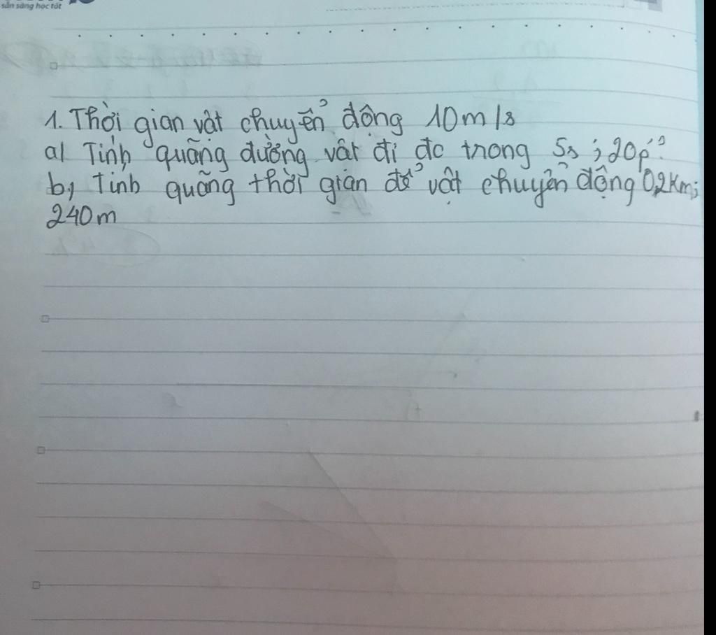 ta có công thức như sau: v( vận tốc)=s(quãng đường):t(thời gian)Thời gian vật vật chuyển động trong 0,2km là: