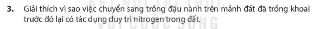 * Việc chuyển sang trồng đậu nành trên mảnh đất đã trồng khoai trước đó lại có tác dụng duy trì nitrogen trong đất vì: