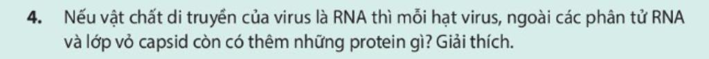 * Nếu vật chất di truyền của virus là ARN thì mỗi hạt virus, ngoài phân tử ARN và lớp vỏ capsid còn có thêm những emzym mà trong tế bào chủ không có ( bản chất của emzym là protein).