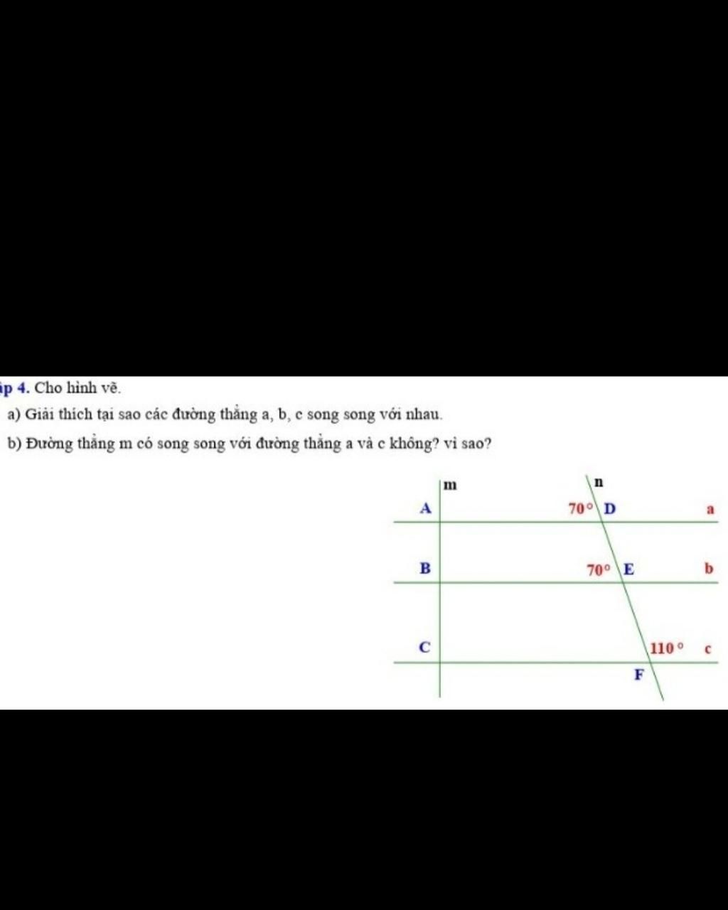 b.Ta có: $a\cap m=A, c\cap m=C\to a, c$ không song song với $m$