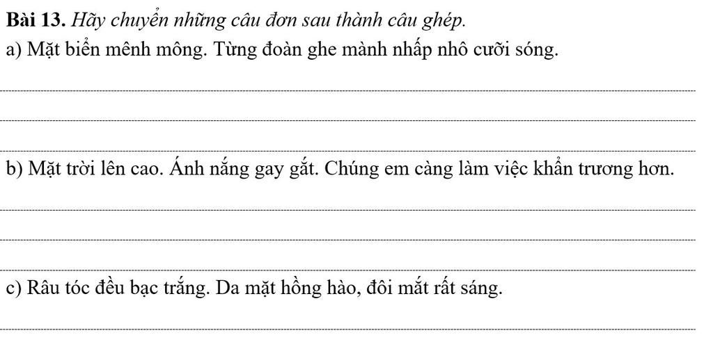 `b)` Vì mặt trời lên cao và ánh nắng gay gắt nên chúng em càng làm việc khẩn trương hơn