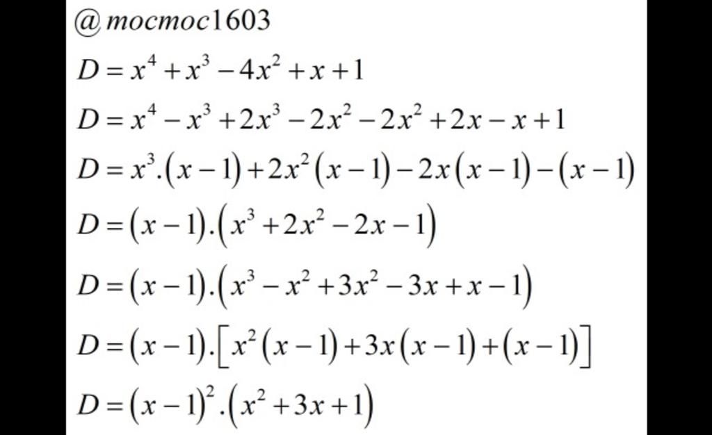 `D= x^4 + x^3 - 4x^2 + x + 1`