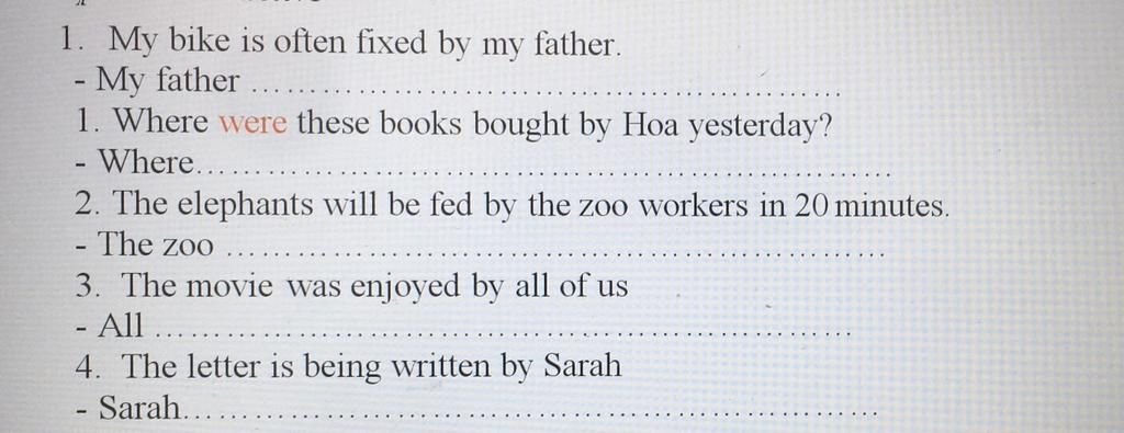 `4)` Thì HTTD: S + am/is/are + being + V-ed/III + by(O)+....................