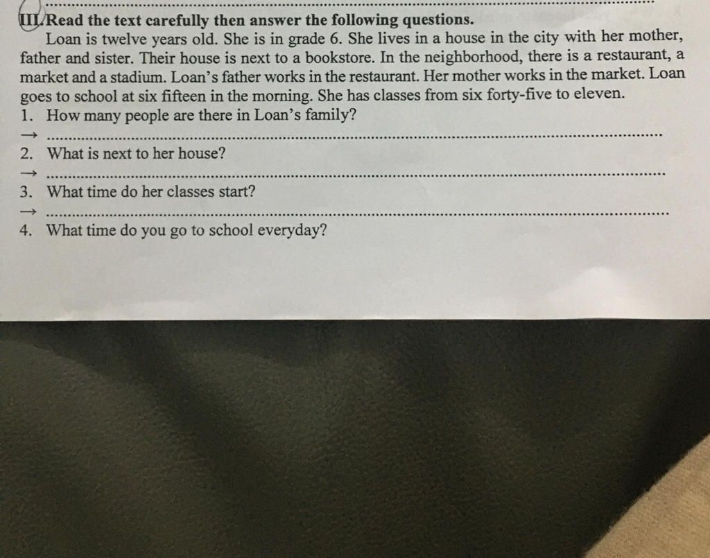 `->` Gia đình sẽ gồm có: Loan, mẹ, bố và em/chị