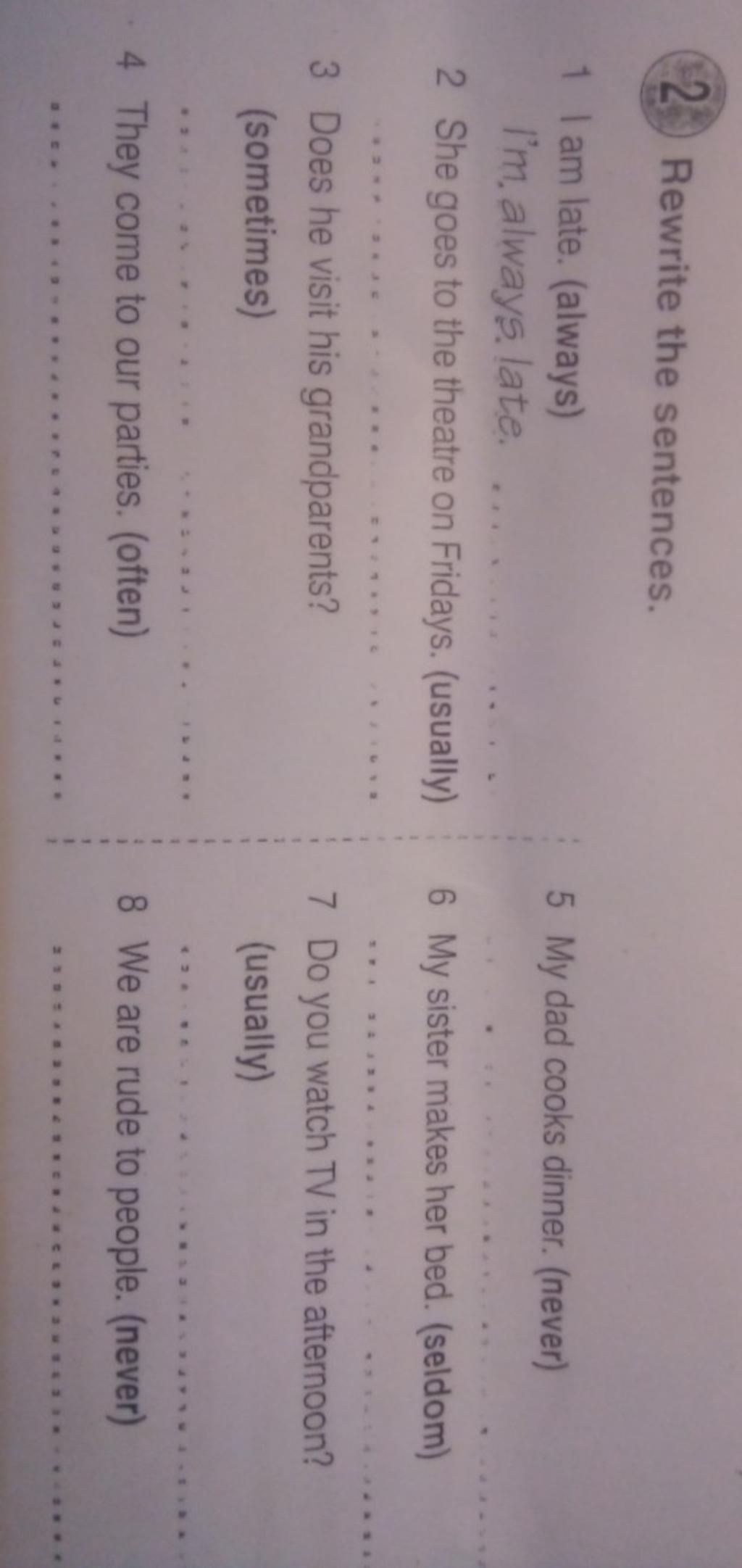 `6.` My sister seldom makes her bed.