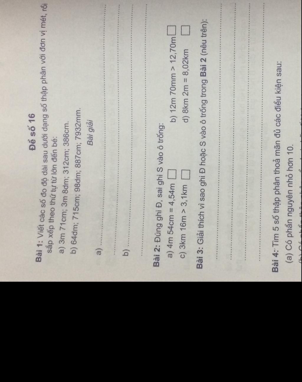 Sắp xếp : 9,8m ; 8,87m ; 7,932m ; 7,15m ; 6,4m .
