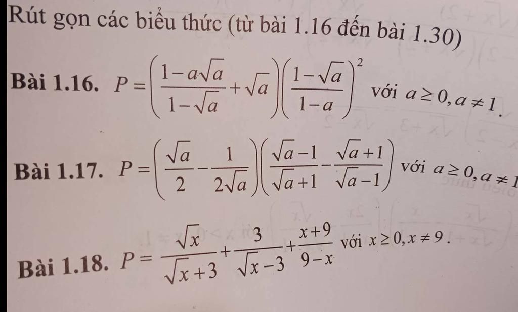 Rút gọn các biểu thức (từ bài 1.16 đến bài 1.30)