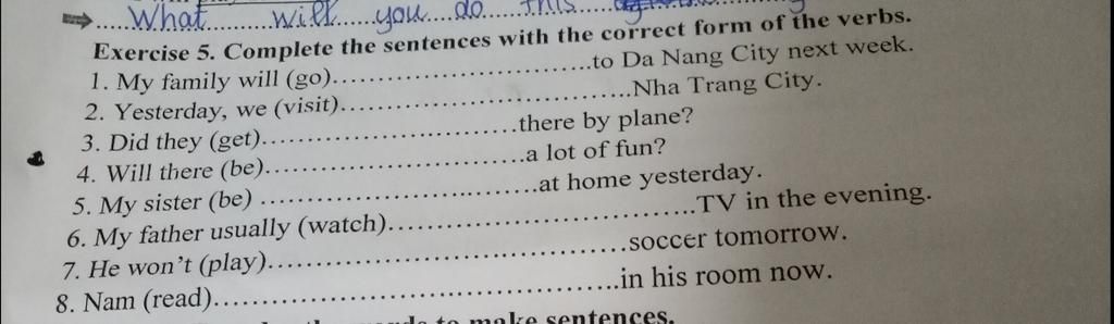 $\text{1. }$go (DHNB tương lai đơn: next week)