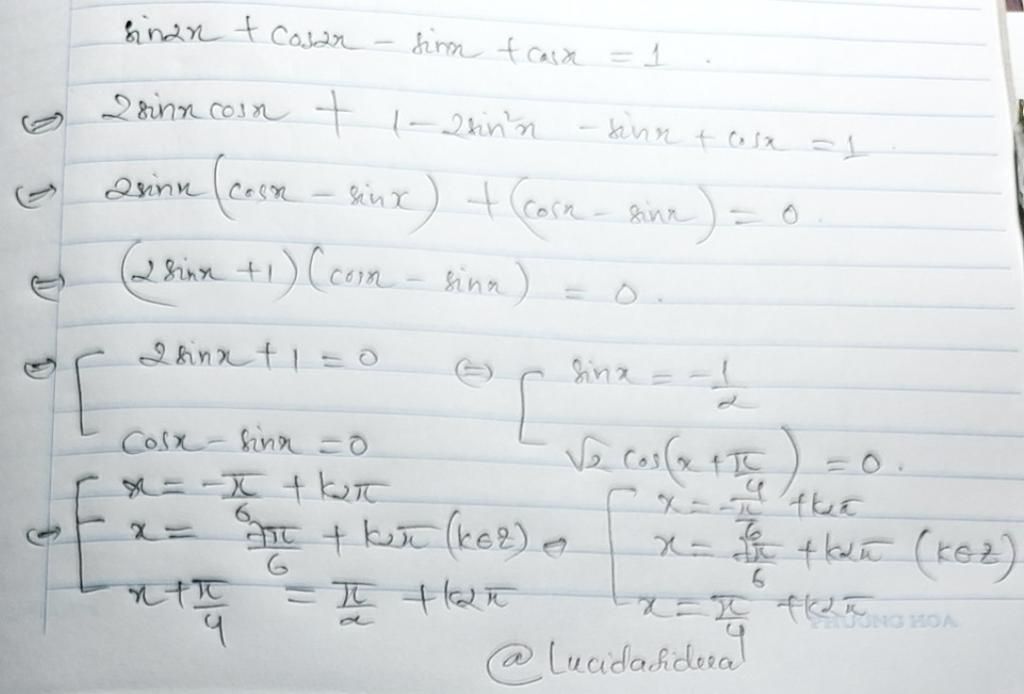 `<=>sin2x+1-2sin^2x-sinx+cosx=1`
