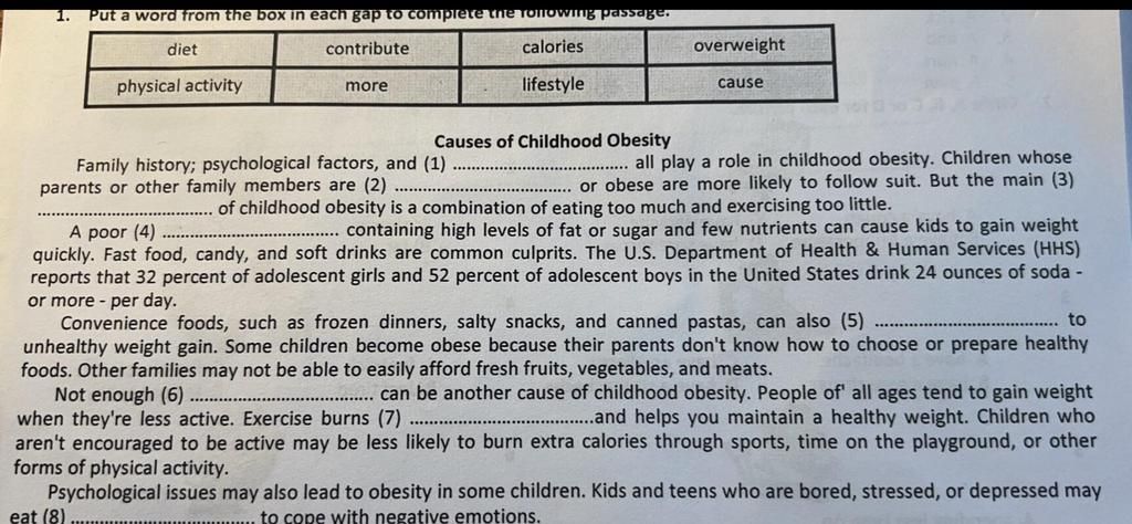 1. Put a word from the box in each gap to complete the following passage.